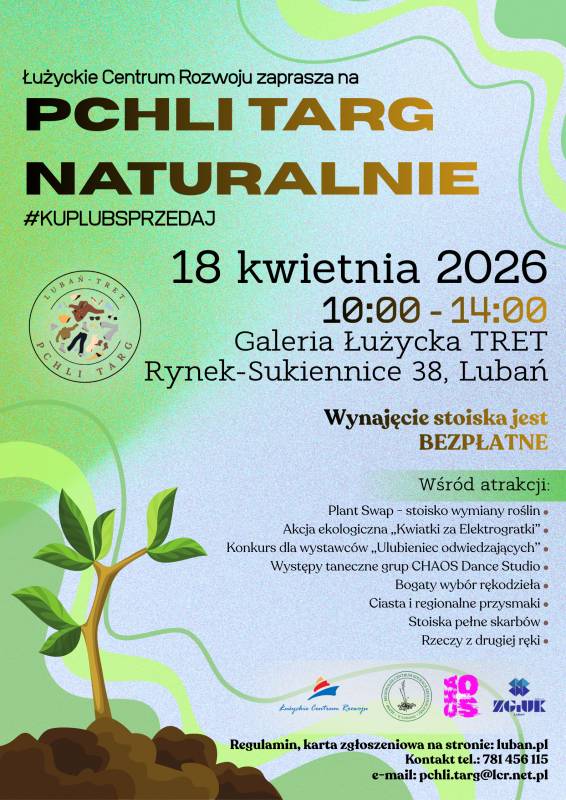 Łużyckie Centrum Rozwoju zaprasza mieszkańców Lubania i okolic na PCHLI TARG NATURALNIE czyli... #KupLubSprzedaj w Lubaniu.