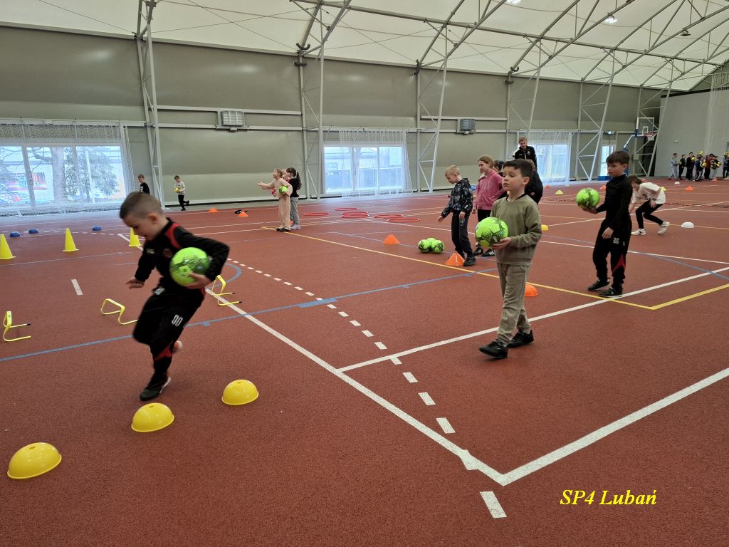 15 kwietnia 2026 roku do naszej szkoły przyjechali trenerzy piłki nożnej. W ramach projektu "ZDolnośląskie Dzieciaki" uczniowie klas 1 -3 na szkolnej hali sportowej "Olimpia" odbyli treningi z piłką nożną.