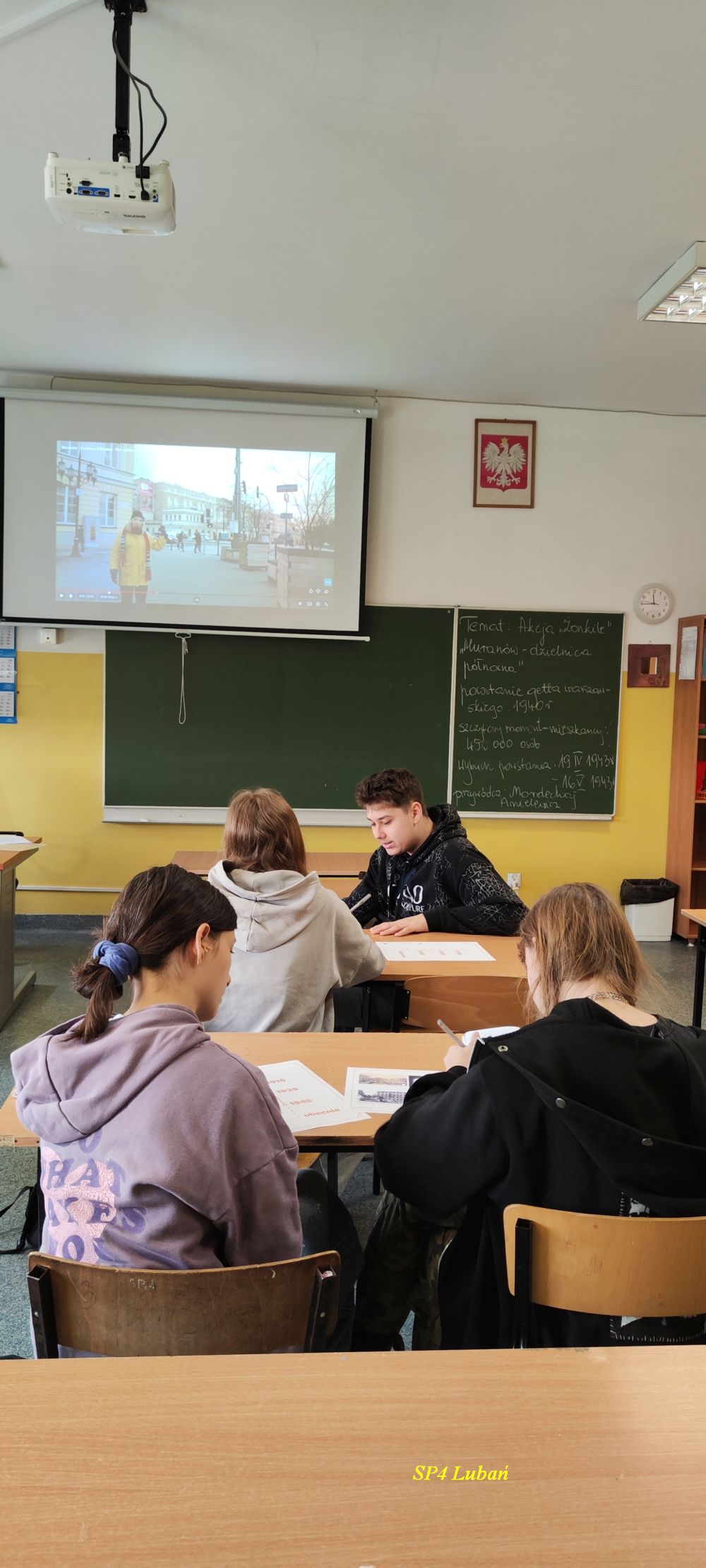 Równolegle w szkole uczniowie dyskutowali i pracowali nad zadaniami opartymi na filmach, które przygotowane zostały przez Muzeum Historii Żydów Polskich POLIN. Dzięki temu mogli jeszcze pełniej poznać kontekst historyczny oraz znaczenie powstania w getcie warszawskim.